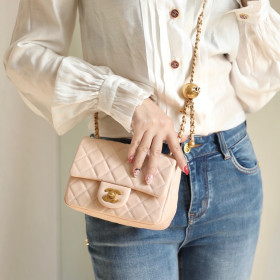 샤넬 골드볼 쁘띠삭 베이지 18cm