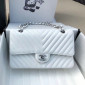 샤넬 쉐브론 클래식 미듐 25cm 램스킨 화이트 은장 > 클래식