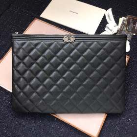 샤넬 보이 캐비어 클러치 라지 블랙 33cm 금장, 은장