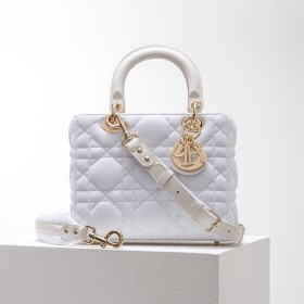 디올 레이디백 D-LITE 미듐 메쉬 화이트 24cm