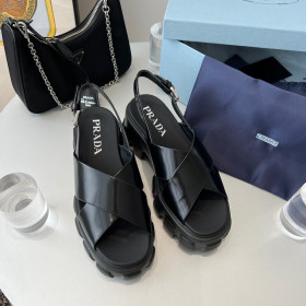 프라다 모놀리스 브러시드 가죽 샌들