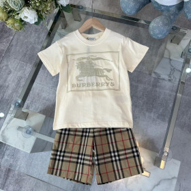 버버리 사각 EKD 프린트 키즈 반팔티셔츠 & 체크 반바지 세트