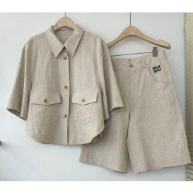 미우미우 린넨 카라 반팔자켓 셋업 2컬러 (국내배송)