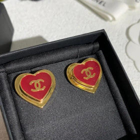 샤넬 레드 하트 귀걸이