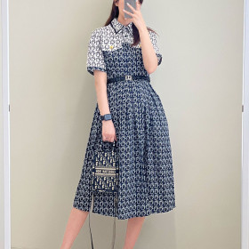 크리스찬 디올 여성 벨트 플레어 카라원피스 (네이비) (국내배송)
