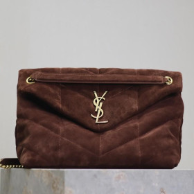 생로랑 루루 푸퍼 스웨이드 숄더백 미니, 스몰, 미듐