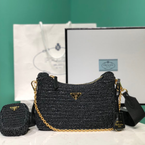 • 프라다 리에디션 라피아 숄더백 23cm