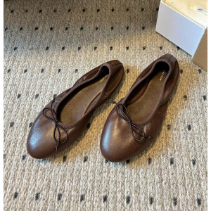 • 더로우 가죽 발레리나 플랫슈즈