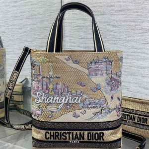 • 디올 자수 라탄 토트백 미듐, 라지
