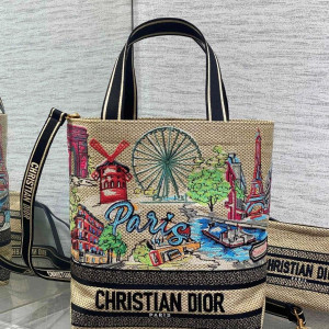 • 디올 자수 라탄 토트백 미듐, 라지